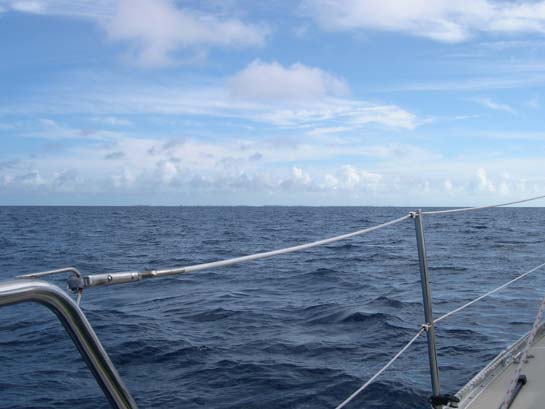"Land ho" - First sighting of Bimini (It's there - look harder.)
