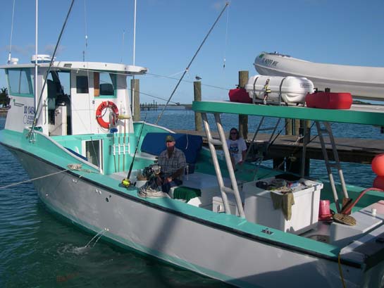 Fred, Wilma, and m/v Shack Money II on which we went wahoo fishing, Bimini