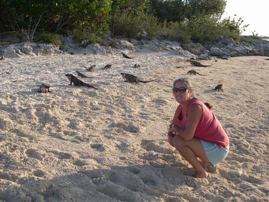 Gail on the ocean side of Warderick Wells Cay, Exumas