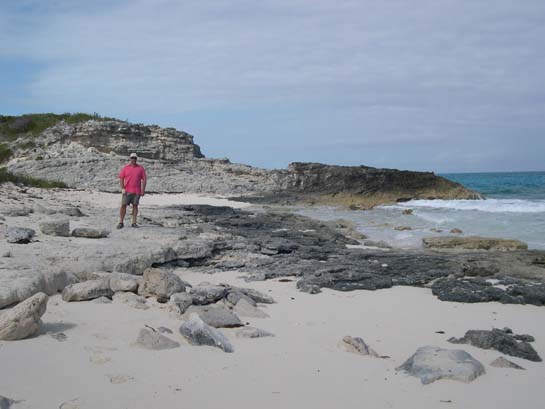 Matthew on the ocean side of Warderick Wells Cay, Exumas