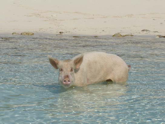 One of the semi-feral pigs at Big Major's Spot, Exumas
