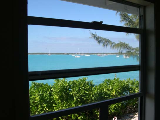Laundromat at Black Point Settlement, Big Guana Cay, Exumas (Looking out on the basin, including Alisios)