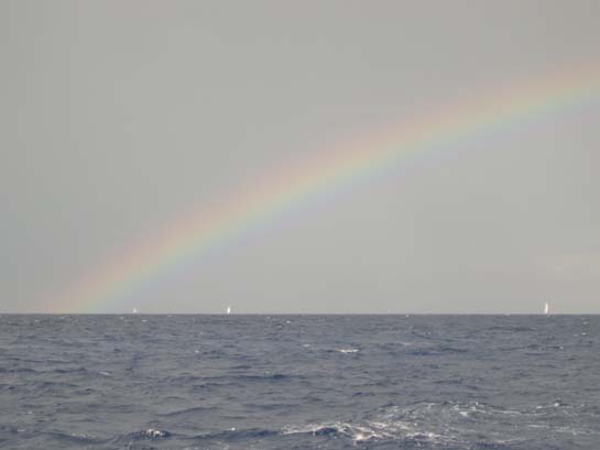 Rainbow on the ocean passage to Georgetown, Exumas (We ended up with 20 - 25 knot winds and several squalls, but a beautiful rainbow afterwards.)