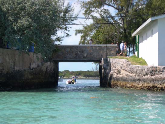 The sea entrance to Lake Victoria, Georgetown, Great Exuma, Bahamas (Depending on the tide, one often had to surf the waves through this to get to town.)