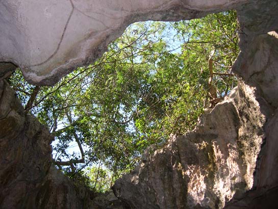 Skylight in cave, Salt Pond, Long Island (The veins on the rock are termite channels.)