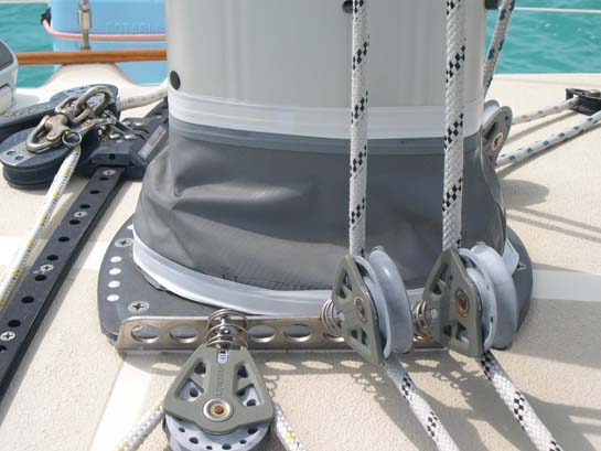 Alisios' mast boot fixed and reassembled (The bottom is held tight by a large stainless steel hose clamp under the white tape.)