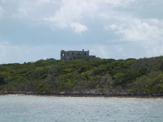 The abandoned and decaying green house / castle on Darby Island, Exumas