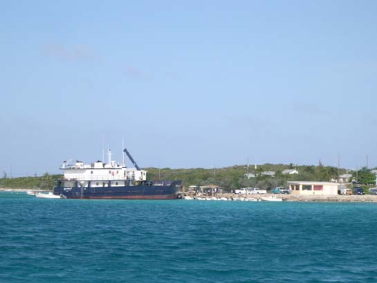 The mail boat at Black Point (In addition to mail, most goods are delivered to the islands via the mailboat)