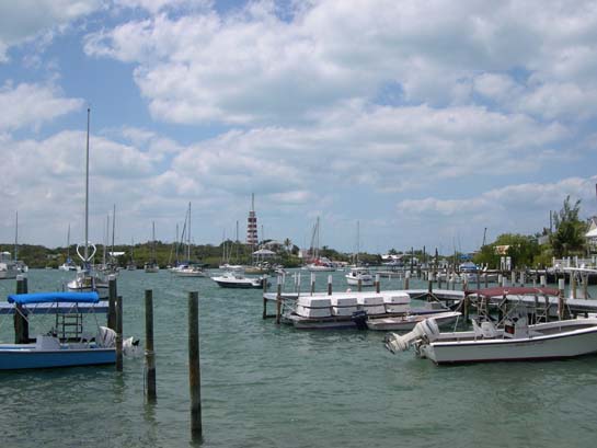 A view from town of Hope Town harbor, Elbow Cay, the Abacos