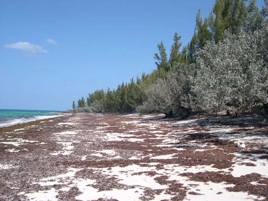 The Atlantic Ocean beach, Allan's Pensacola Cay (Unlike the resorts, natural beaches don't have teams of Hatian migrants raking up the seaweed.)